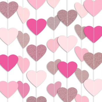 Sevgililer günü parti süslemeleri sıcak pembe gül-altın asılı kalp flamalar kağıt Garlands afiş kızlar için duvar süslemeleri